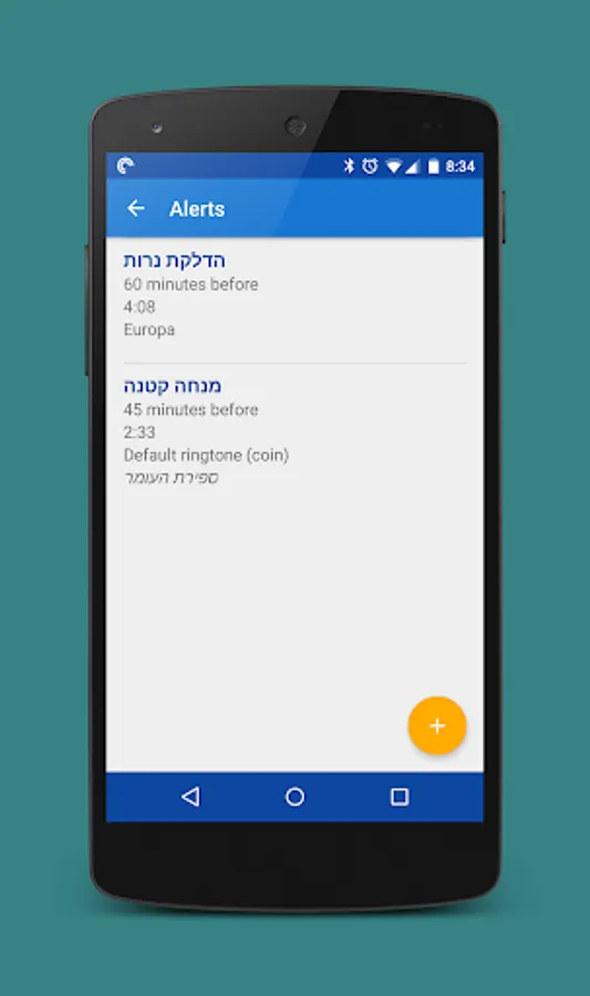 -Special zmanim (candle lighting, fast times, biur chometz etc.)