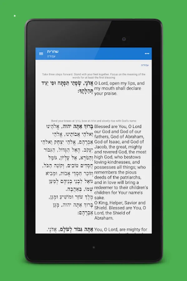The only free siddur in beautiful Material Design that contains all of weekday davening in nusach Ashkenaz, Sfard and Edot HaMizrach. The siddur contains all the text you would expect in a regular print siddur. It knows what day it is and delivers the specific tefilos for that day. This becomes especially powerful on fast days when it can deliver the appropriate selichos at shacharis and kria at mincha. It also includes a luach zmanim.