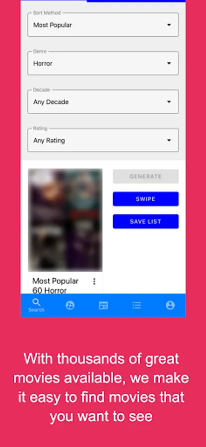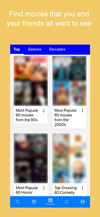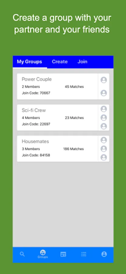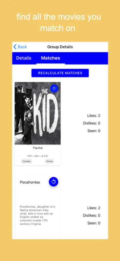 This simple process works not only with you and your partner, but even with groups of up to 10 friends! Everyone's matches are displayed in an easy to use interface to make movie night fun for everyone.
