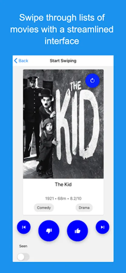 Movie Matcher makes it easy to find great movies that you and your friends want to watch, by using a straightforward swipe left / swipe right interface to quickly sift through them.