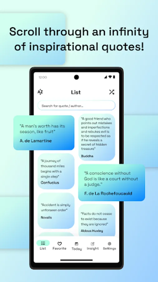 - FAVORITES: Each quote of the day and each quote in the list can be saved in the Favorites list and can be consulted on any occasion.
