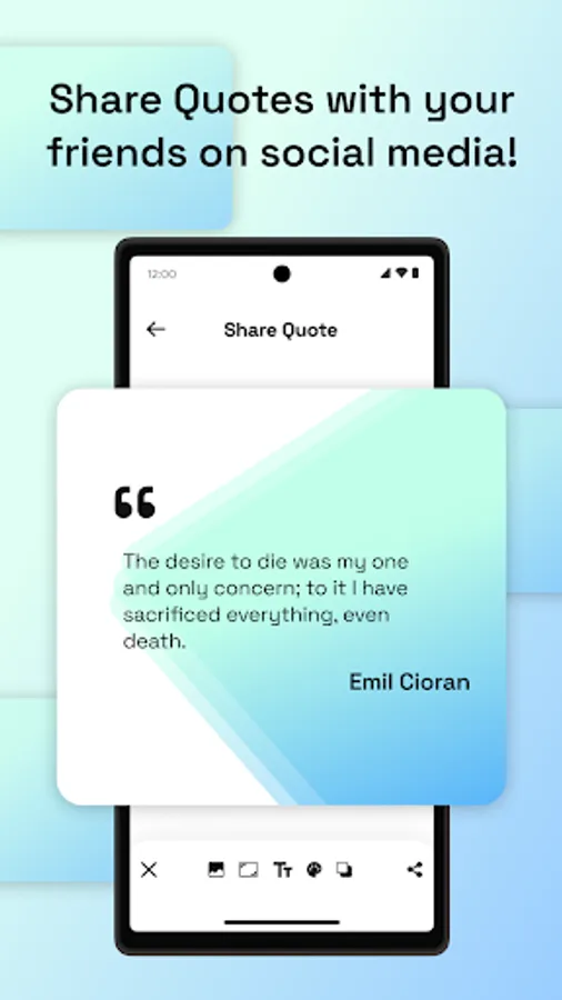 - CREATE BEAUTIFUL PHOTOS: Create stunning photos using the quote and share them with everyone. You can customise the background and the text color of the quote.