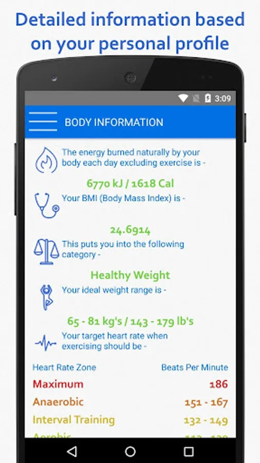 You’ll have all this info at your fingertips when you get Pocket Cal/kJ Pro. With advanced formulas that factor in your personal data - age, weight, height etc – you’ll have your very own diet and exercise consultant at the touch of a button!