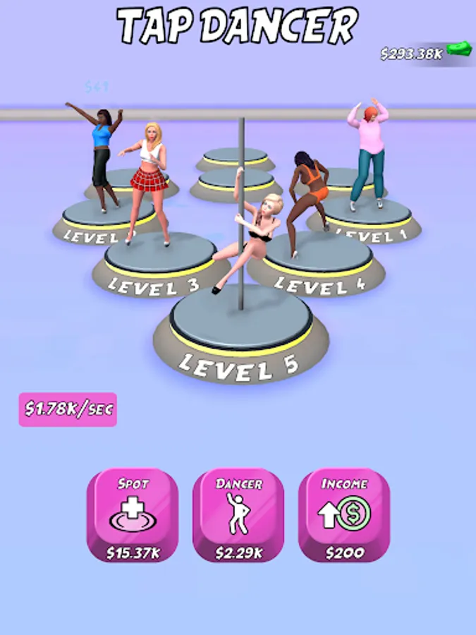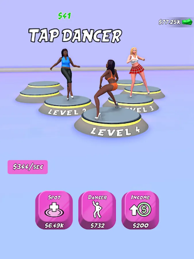 Upgrade and merge dancers to earn more.