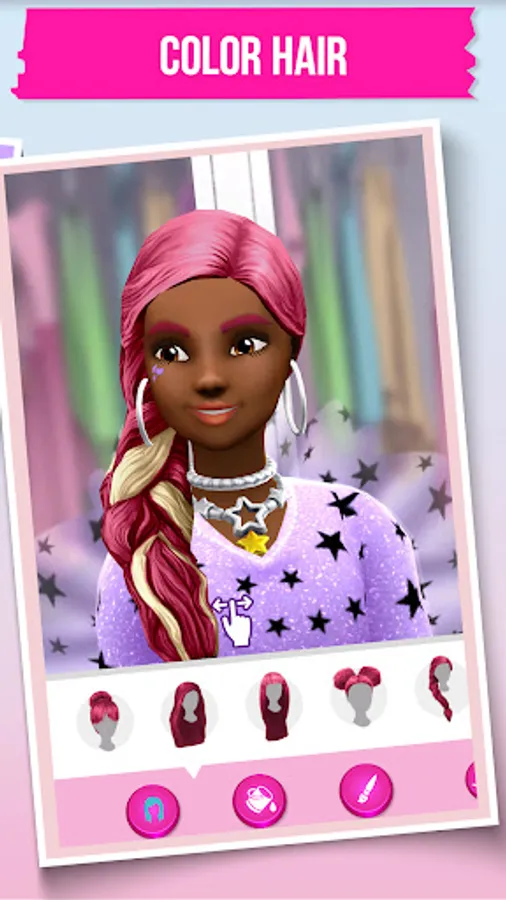 HAIR & MAKEUP. Choose between a bun, ponytail, braid, and many more hairdos to fit your style. You can even color your model’s hair. Apply magical makeup to pull your look together!