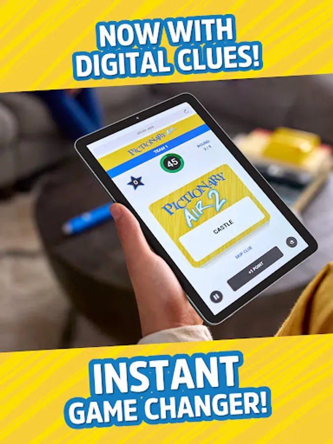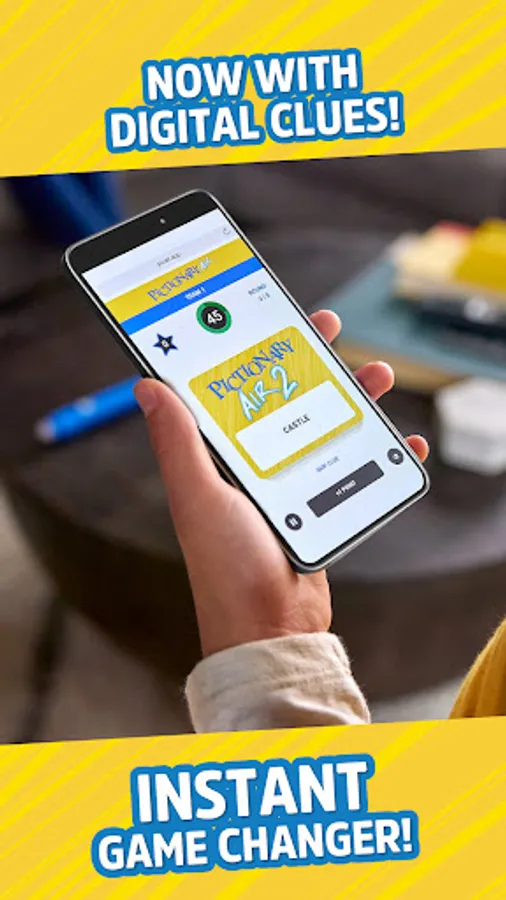 Pick up the Pictionary Air™ 2 upgraded pen (sold separately), connect it to the app, unlock clues and get your air-drawing game on! Clear the screen and add points directly from the pen. You can also save and share videos of all your funny gameplay moments! Several themed digital clue packs are also offered as an in-app purchase, so you can keep on playing!