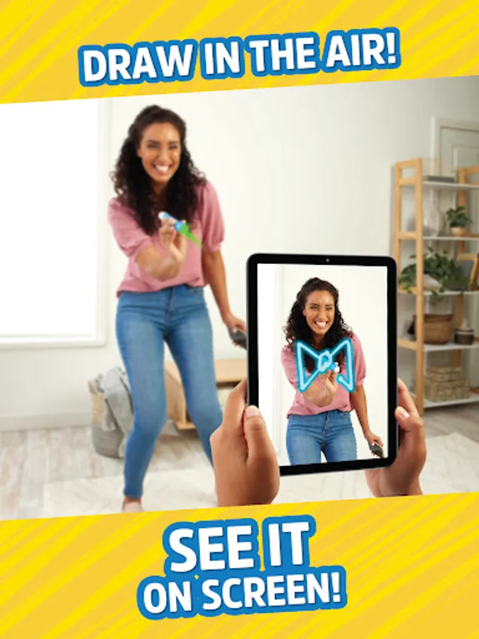 Draw in the air and see it on screen in this hysterical way to play Pictionary™. Interact with your sketch, similar to charades, while your team guesses as many clues as they can!