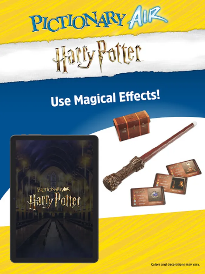 Pictionary Air™ Harry Potter™ adds magical flair to the original air-drawing game! Choose two Hogwarts™ houses and battle it out to win the house cup. Fill the meter to earn 2x points and add magical effects! Find the Golden Snitch for even more points!