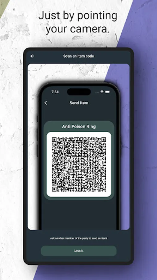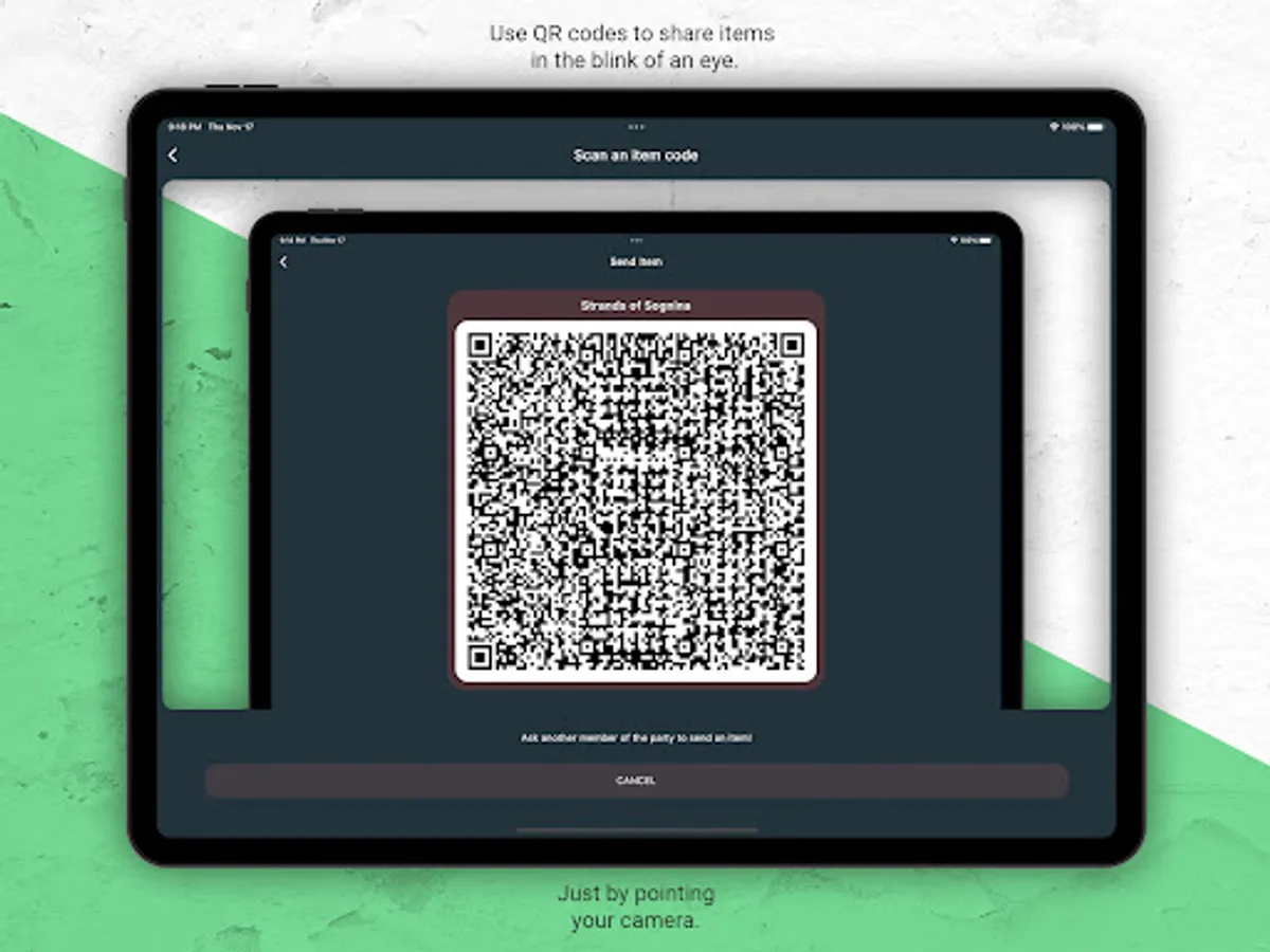 Use one of the many built in SRD item templates to get started making an item, or just make your own from scratch! Once you're happy with your masterpiece, quickly and easily use a simple generated QR code to share it with other players instantly, just by pointing their camera.