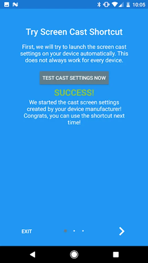 This application provides an easy shortcut and widget to use the Miracast external display screencasting feature included in Android 4.2 and above! With this app, you will more conveniently be able to mirror your screen or use the cast feature from supported applications.