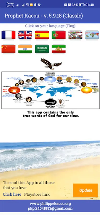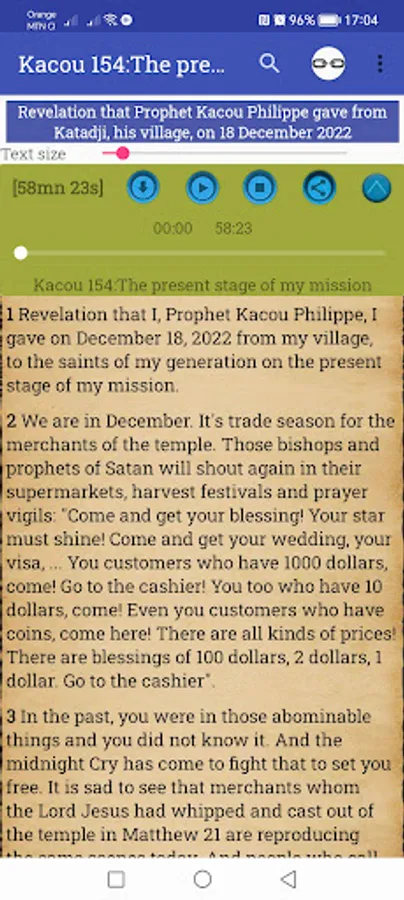 This application contains the entire Message of Prophet Kacou Philip in text and audio format as well as the account of his conversion and the three great visions of his call and commission as he received them. The Message is already in 44 languages.