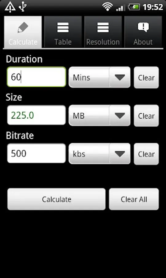 BitCalc Pro allows you to quickly calculate duration, file size and bitrate for video encoding projects. Specify two of the parameters and BitCalc Pro will calculate the third. This allows you to calculate bitrate from duration and file size, calculate file size from duration and bitrate or calculate duration from file size and bitrate.