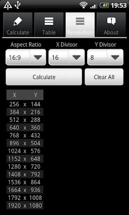 The latest version added a "Resolution" tab which calculates resolutions with a set aspect ratio where the X and Y dimensions are divisible by 4,8,16 or 32. These resolutions often make for more efficient encodes where the X dimension is a multiple of 4 (this varies with codec).