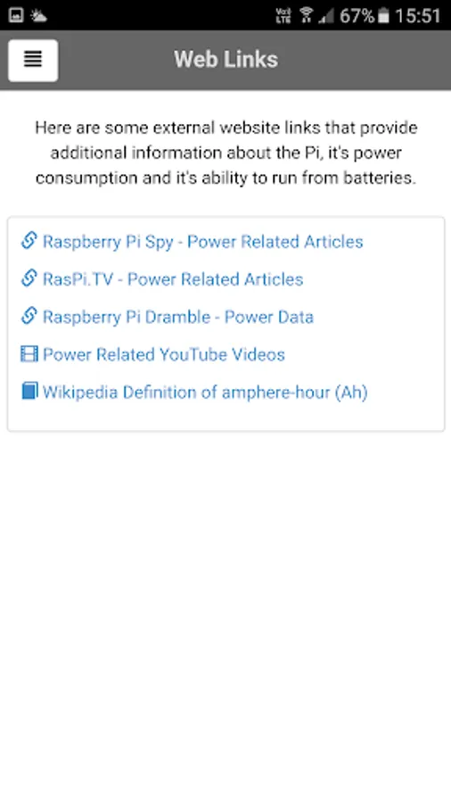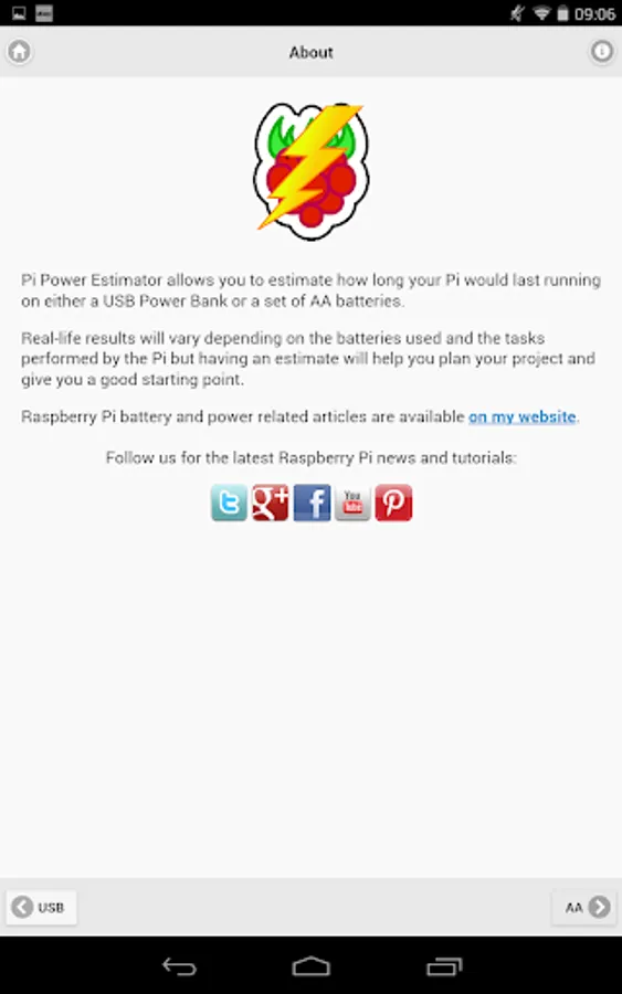 This app does not contain any adverts but does contain some clearly described links to RaspberryPi-spy.co.uk and my social media channels. These are directly related to the Raspberry Pi.