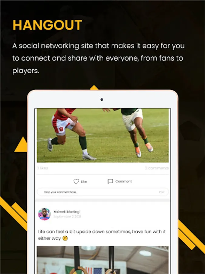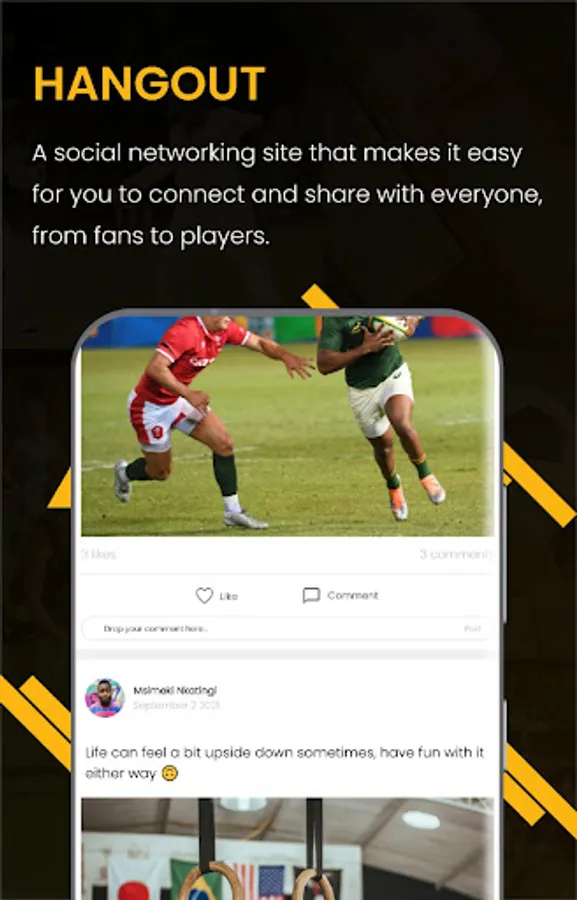 Connect, Network and Engage with other sports fans and confederations from around the world, featuring the likes of Happy Jele, Dino Ndlovu, Rhulani Mokwena, Tennis South Africa, Sunshine Tour, GolfRSA, Golf PGA, Swimming South Africa, Netball South Africa, and more exclusive to MySportsBook.