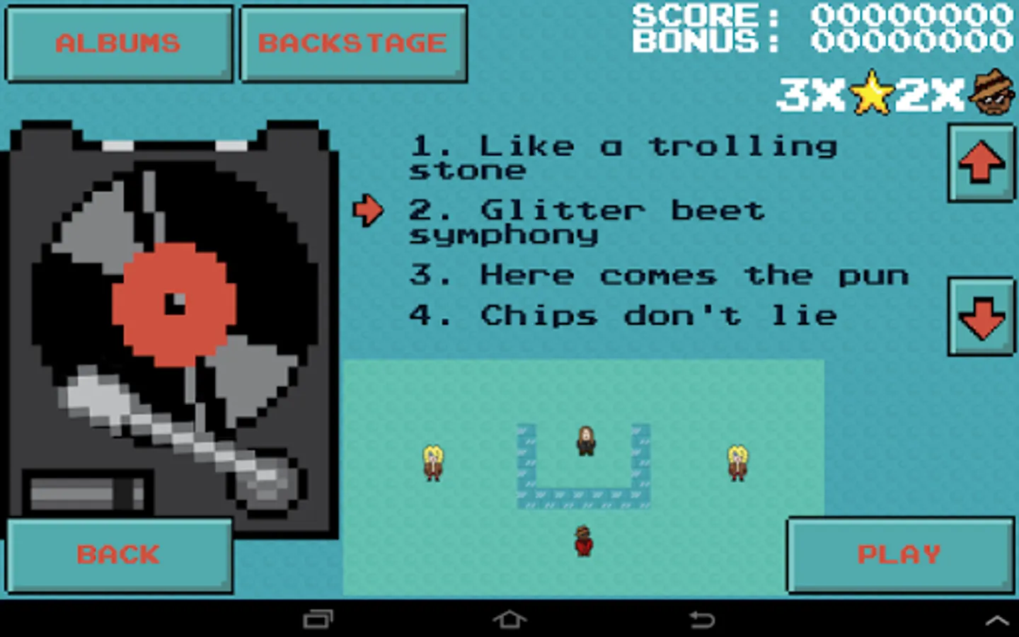 Oh no! Metalheadz have stolen Jazzman's favorite records! Release your inner jazzman and help to get the sweet records back.