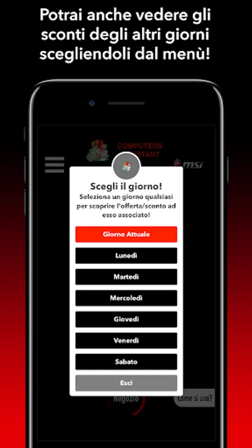 Thanks to this App, you can take advantage of a certain type of discount every day, reserved only for App owners.