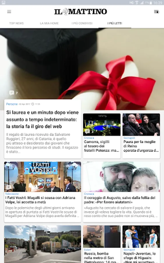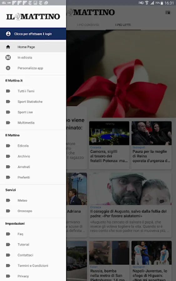 An app always live with news constantly updated by a dedicated editorial staff that will keep you informed about the main events of the day. Il Mattino offers a new, richer and more customizable experience in reading news. You can find: