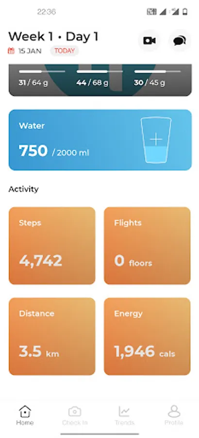 Nutrition, Hydration & Habits: Access meal plans assigned by your coach and log your food intake to keep a close track of your calorie intake and macros. You can also track your hydration, steps and calories burnt on the app.