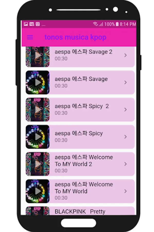 Are you tired of the same tones on your cell phone or tablet? We have the best kpop music tones You can set them as a ringtone, message, alarm, notifications or whatsapp ringtones. It is a compilation of the most popular and important songs of musical genres such as pop, rap, EDM, rock or R&B. (BTS, BLACKPINK, SEVENTEEN, Aespa, Jin, Suga, J-Hope, RM, Jimin, V and Jungkook, Jennie, Lisa, Rosé, Jisoo, S.Coups, Jeonghan, Joshua, Jun, Hoshi, Wonwoo, The8, Mingyu , Woozi, DK, Seungkwan, Vernon, Dino, Karina, Giselle, Winter, Ningning and many more artists Find a wide variety of tones-ringtones in the best part of your favorite song for your Android smartphone