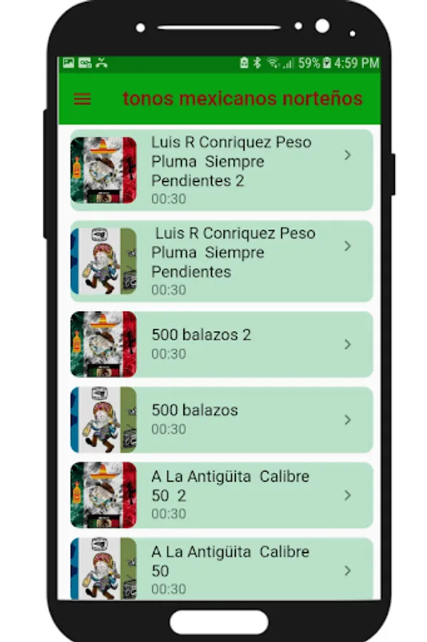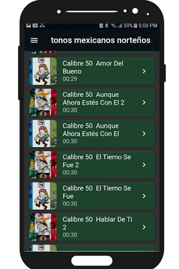 Are you tired of the same tones on your cell phone or tablet? We have the best Mexican music tones You can set them as a ringtone, message, alarm, notifications or WhatsApp ringtones. It is a compilation of the most popular and important songs of the norteño genre, corridos tumbados, Mexican soundtracks, Latin and norteño pop , regional mexican music, regional mexican pop. (featherweight, frontera group, firm group, caliber 50, Luis r conriquez, carin león, Christian nodal and many more artists Find a wide variety of tones-ringtones in the best part of your favorite song for your Android smartphone