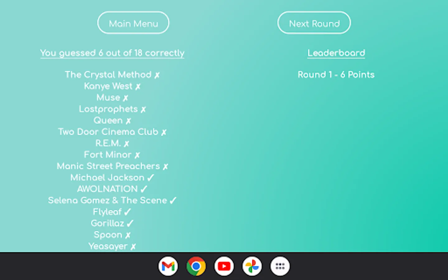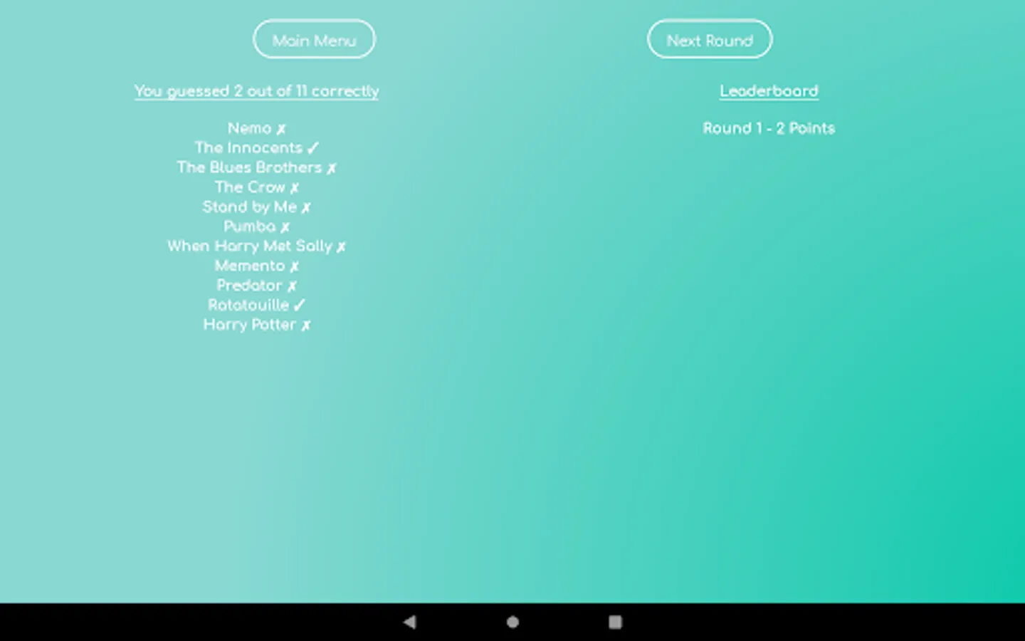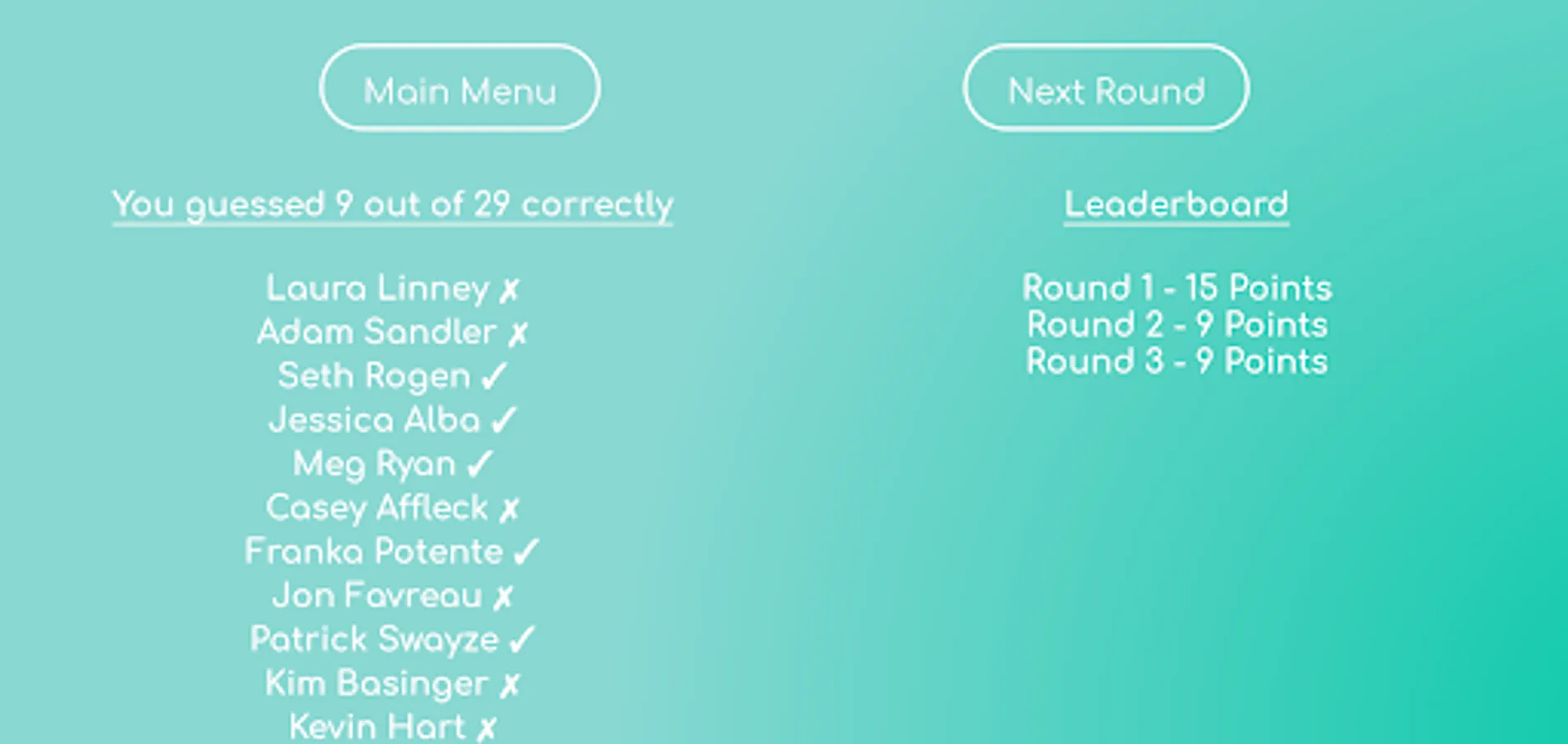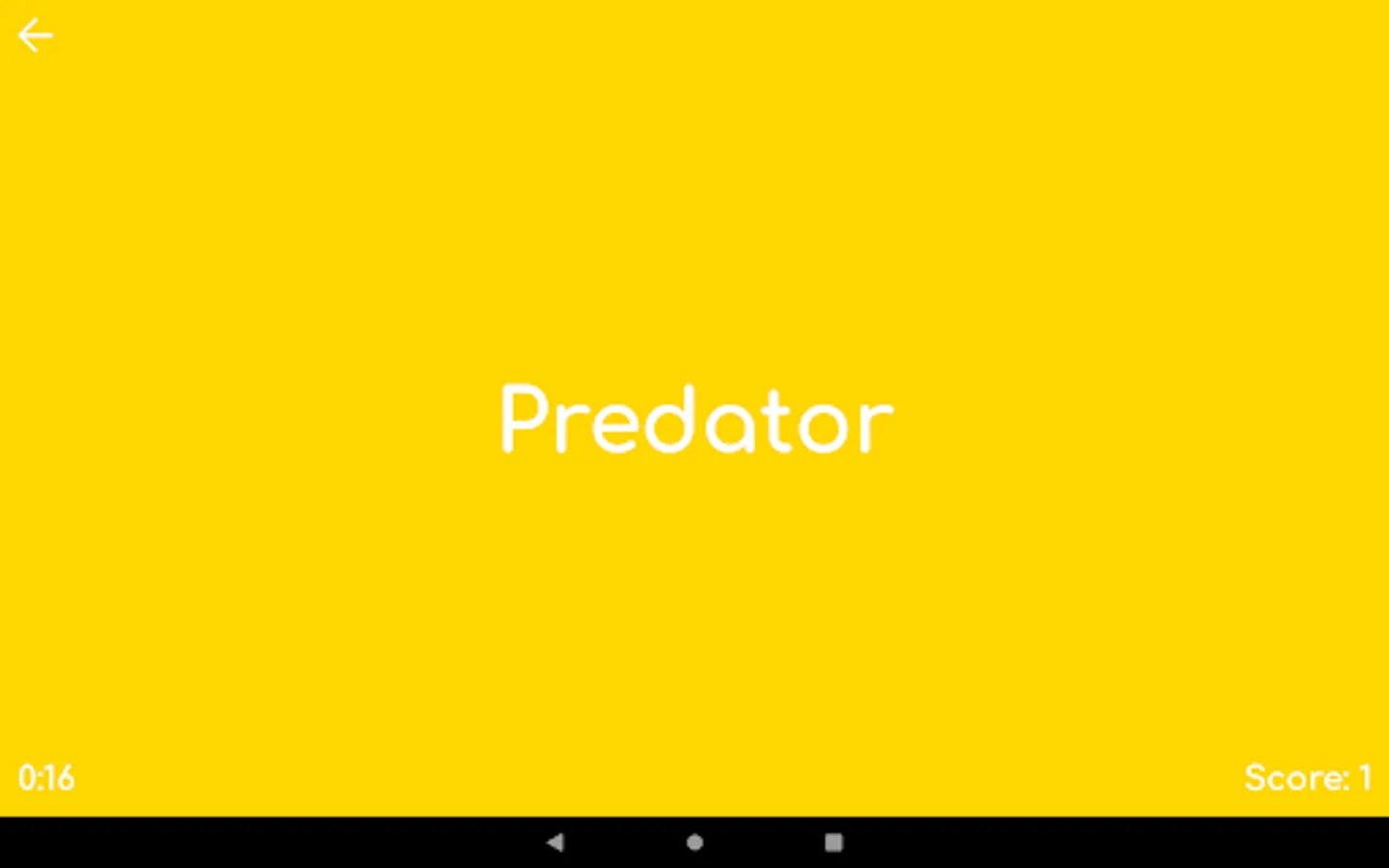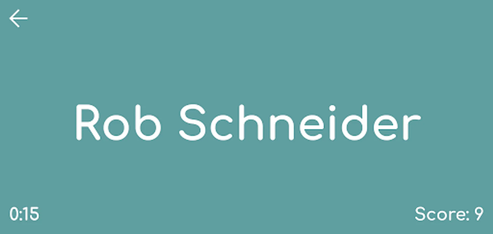 Pick from categories including Movies, TV, Animals, and Music Artists. Hold your phone up for everyone but you to see. Everyone gives you hints to guess the name displayed on the screen. Double-tap for a correct answer. Swipe the screen to skip.