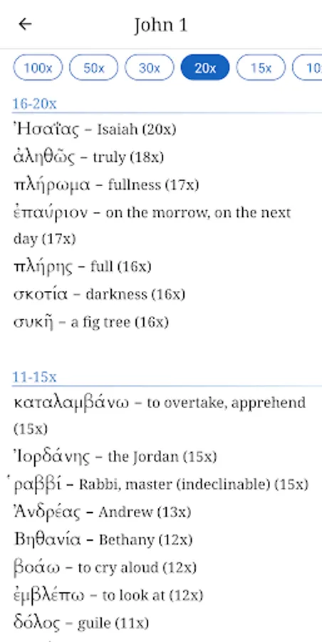 - Vocab: view all vocabulary for the current chapter at a glance, organized by frequency