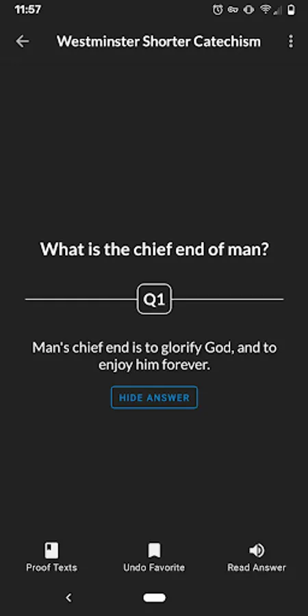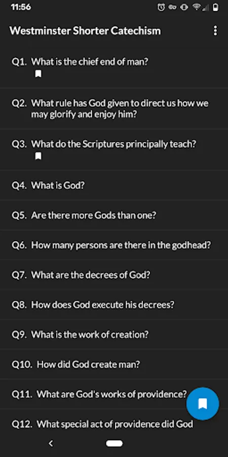 • Reminders – choose a time to be reminded daily to review the catechism, with the option to start from Q1, to continue where you left off, or to review your Favorites.