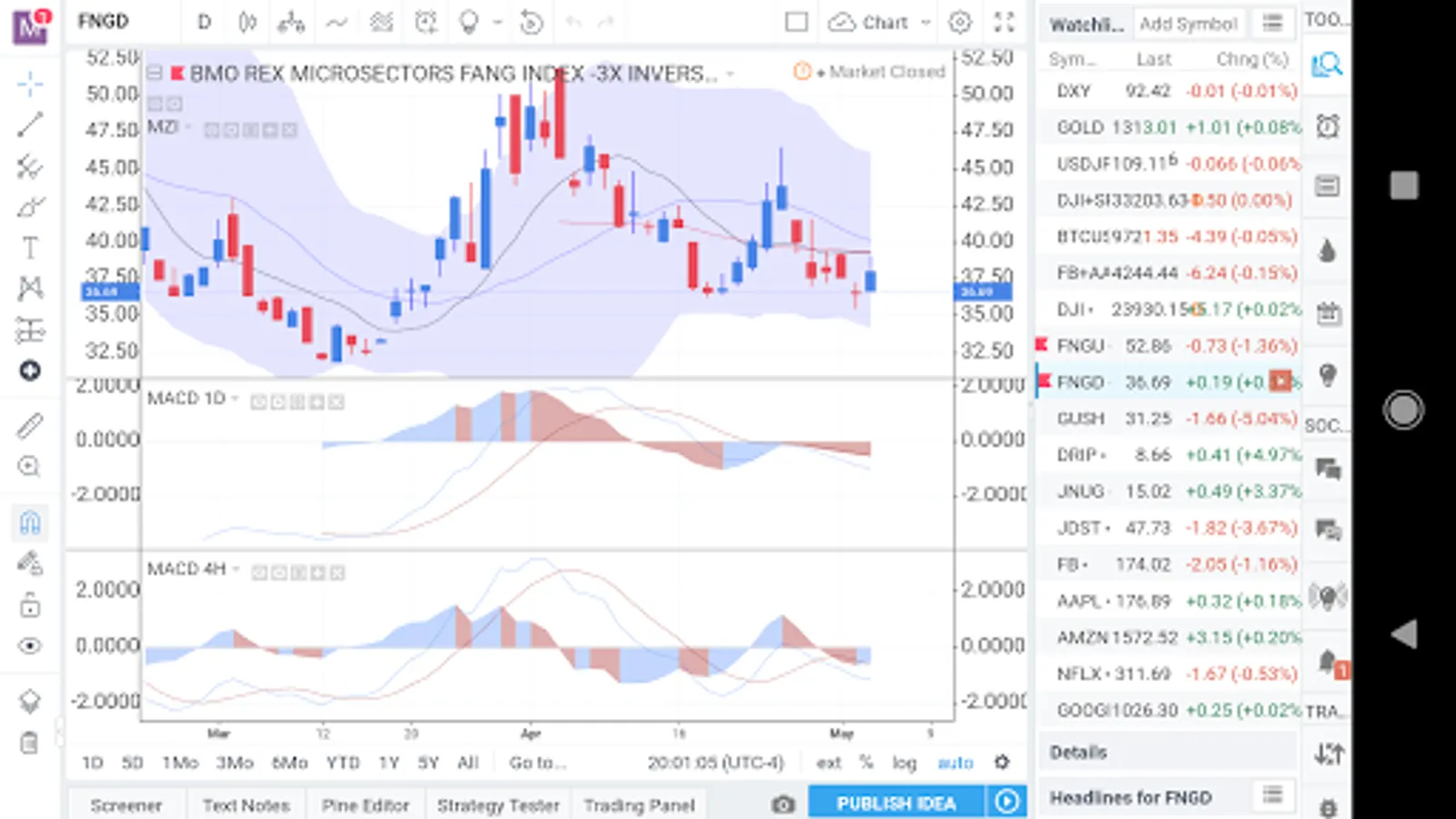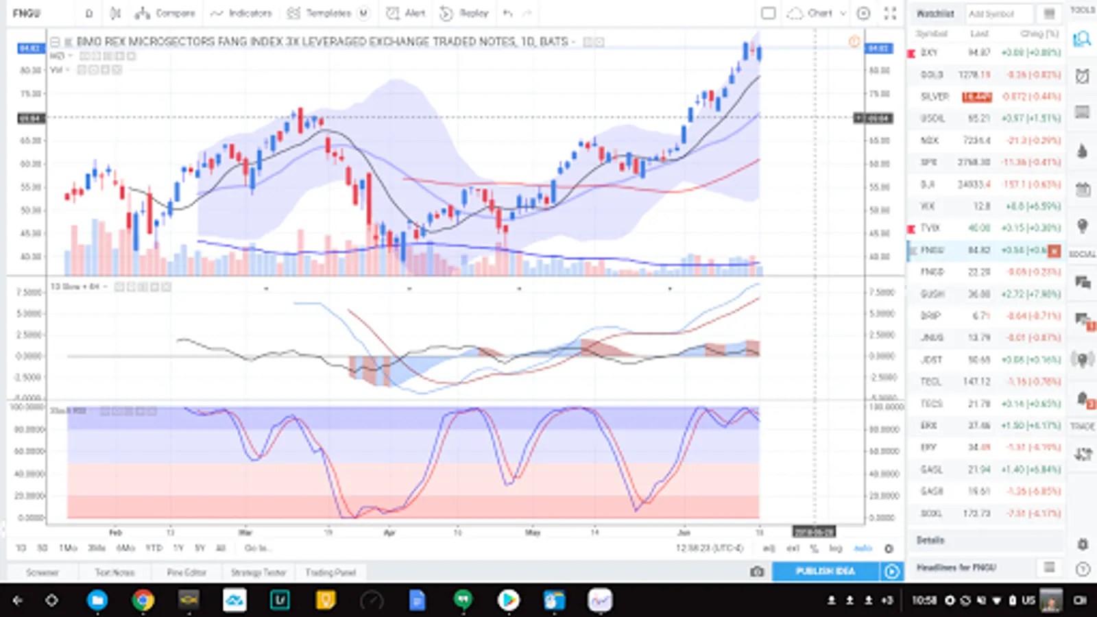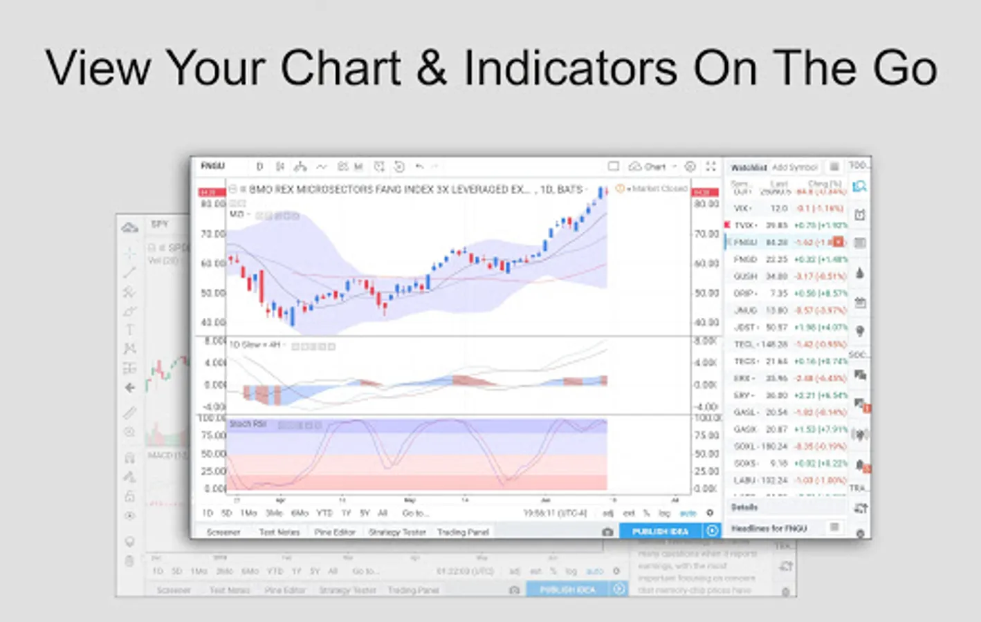 Use technical indicators like the MACD, Stochastic, and hundreds more as you track your Stocks Commodities, ETFs, Cryptocurrencies, FOREX, and more.