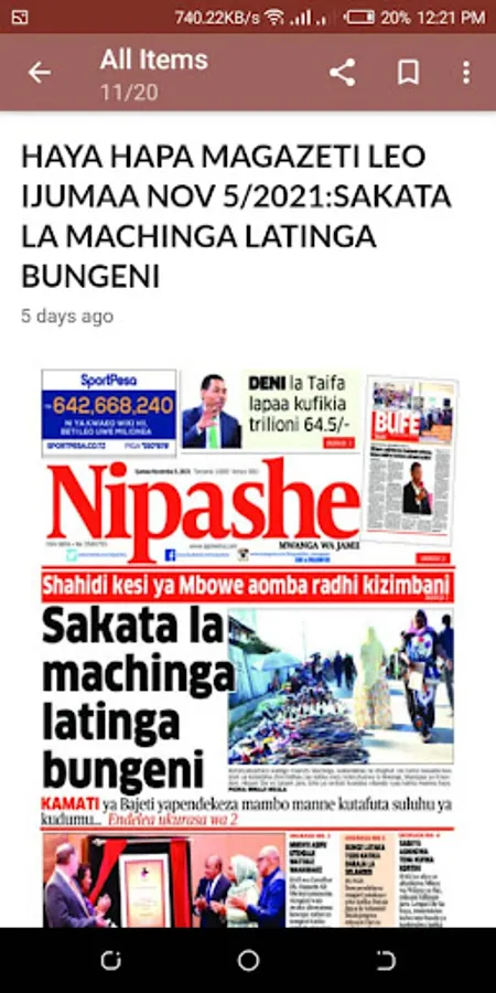 Pia kupitia app ya matukio daima utaweza kupata habari zote zilizopo kwenye magazeti ya kila siku.