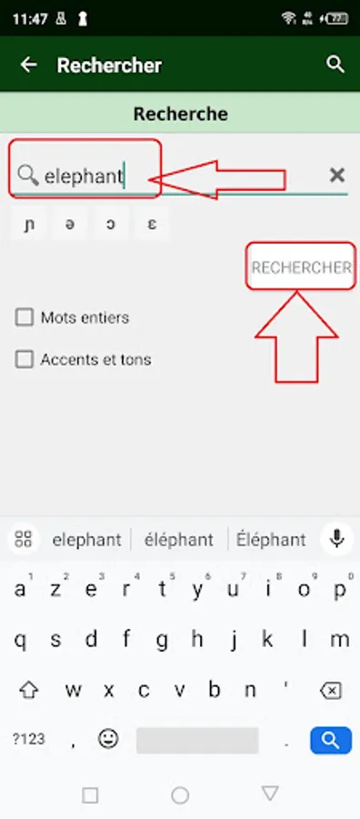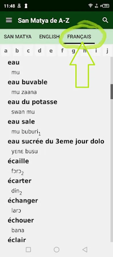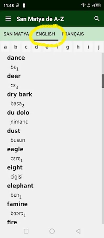 • Balayez pour parcourir d'une langue à une autre, ou encore d'un mot à un autre mot.