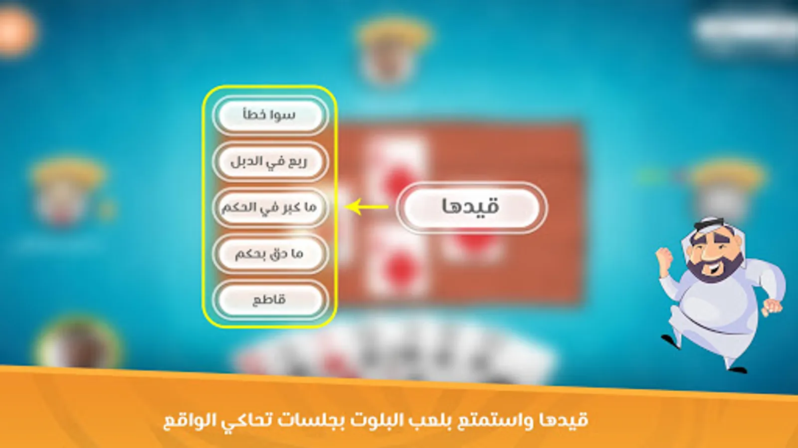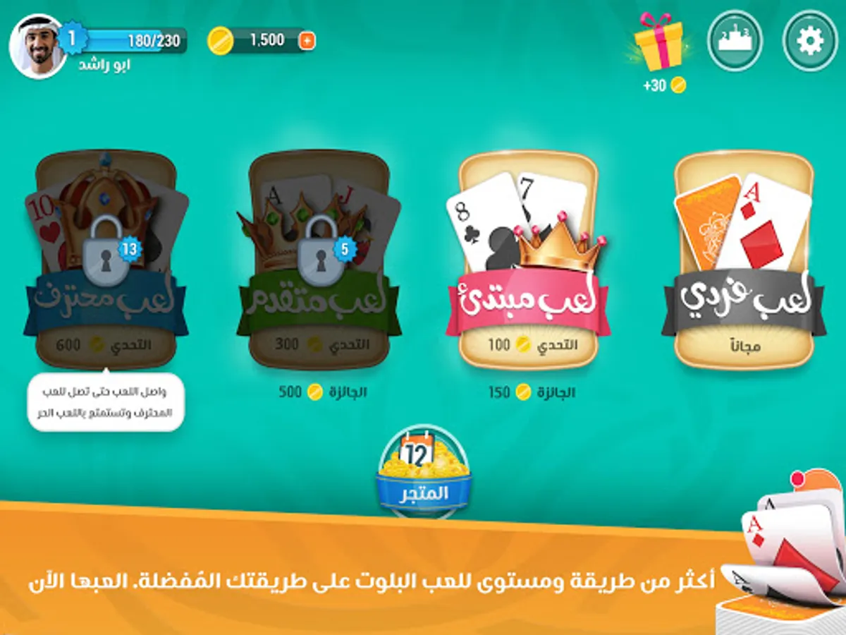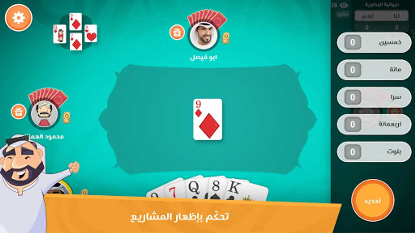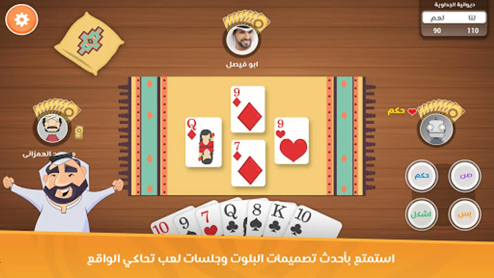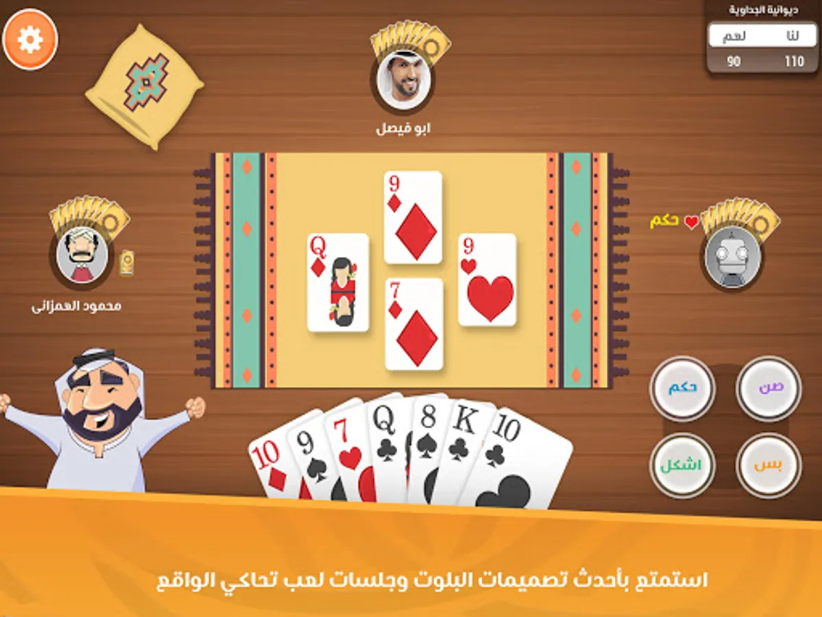 Do you think that you are a Balot expert? Do you know how to restrict your mate when he cuts? Talking is easy! Come to Baloot Dewania and let’s see what you’re capable of.
