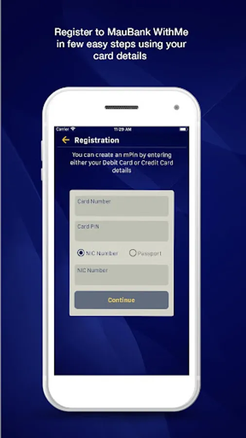 Simply download the app from App Store or Play Store, create the mPIN of your choice using your debit/credit card, PIN, NIC/Passport and Mobile number to enjoy WithMe - A New Banking Experience.