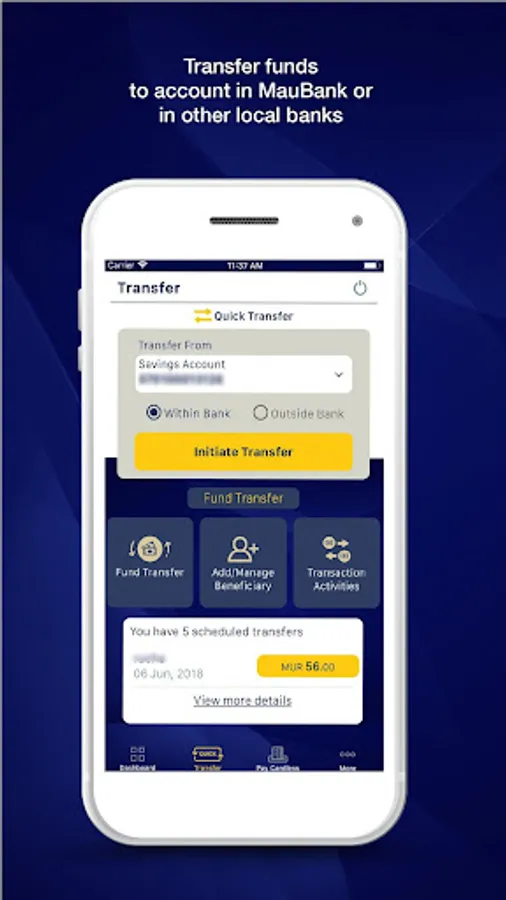 - Transfer funds from MauBank to another local bank instantly through IPS