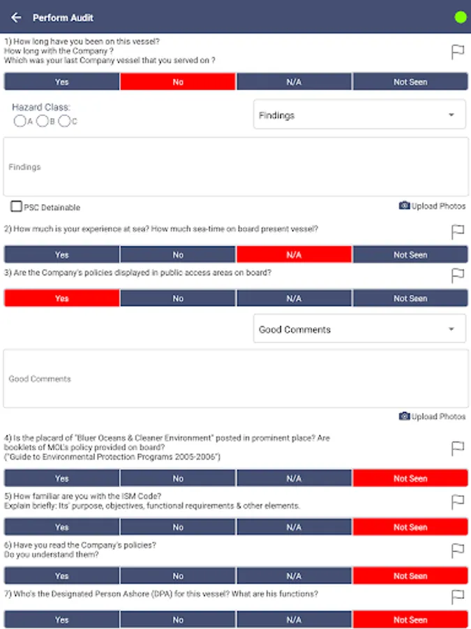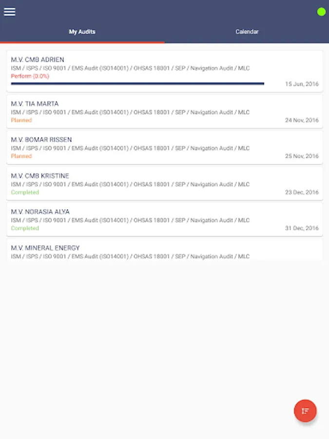 mAuditor gives you all information related to an inspection/audit in the palm of your hand, from audit calendar to plan your upcoming and ongoing audits, and audit list with the progress of your audits, and perform an audit with good or bad comments with media like photos. Your checklists and reference manuals can be accessed easily and audits can be performed accordingly. mAuditor is an indispensable tool for inspect/audit places built by OceanManager