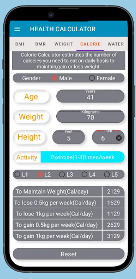 4.Calorie Calculator estimates the number of caloeies you need to eat on daily basis to maintain,gain or loss weight.