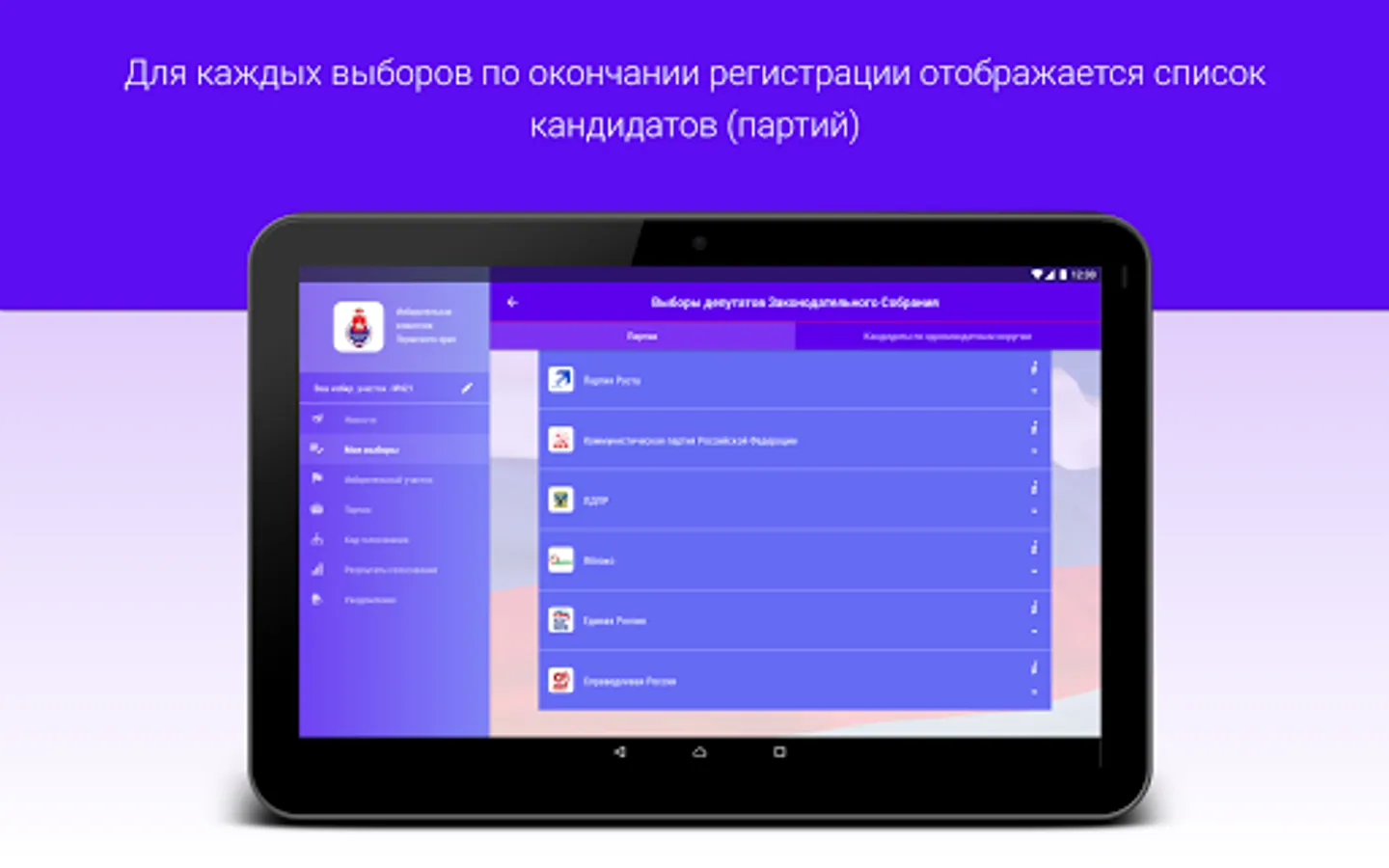 The application provides information about the election in a simple and readable form, and contains only the most essential information for the voter. Automatic distribution of notifications in a timely manner will inform about the main events of the election campaign.