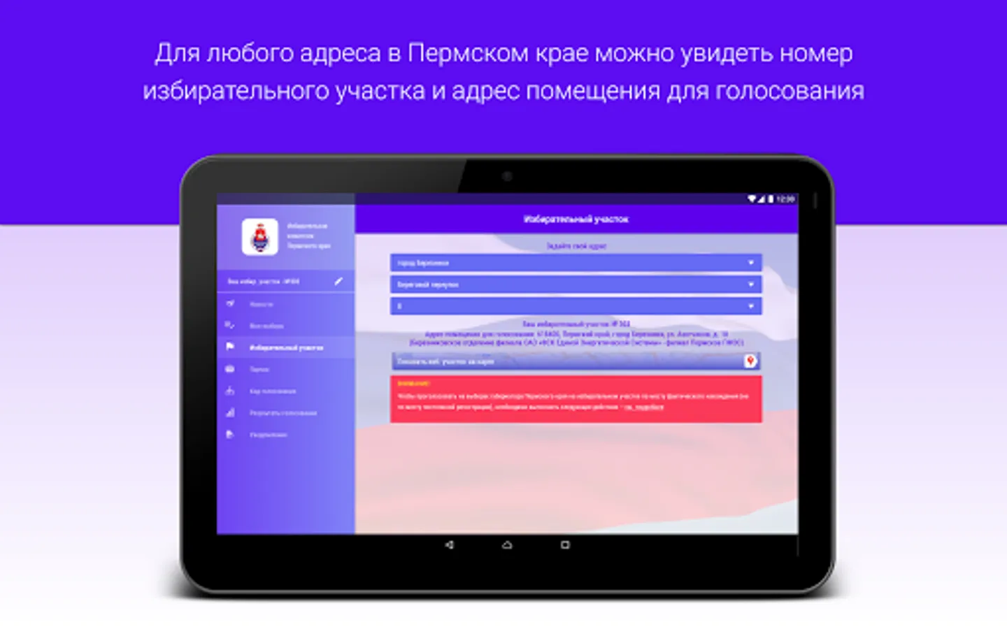 Annex residents of the Perm region will be able to get information about the current election campaign in the region, to learn about the next elections, participating in their candidates, parties and news of the Election Commission. In addition, the app will quickly find their polling station.