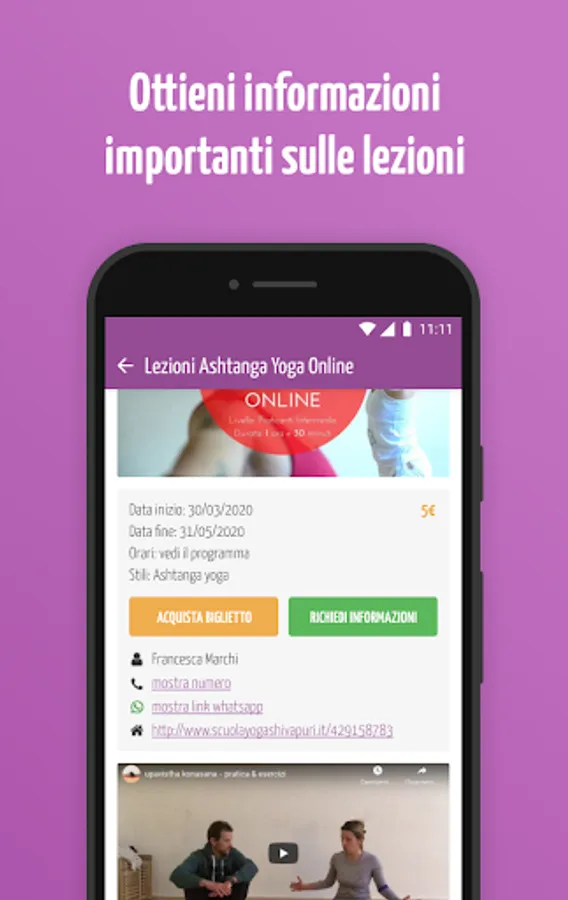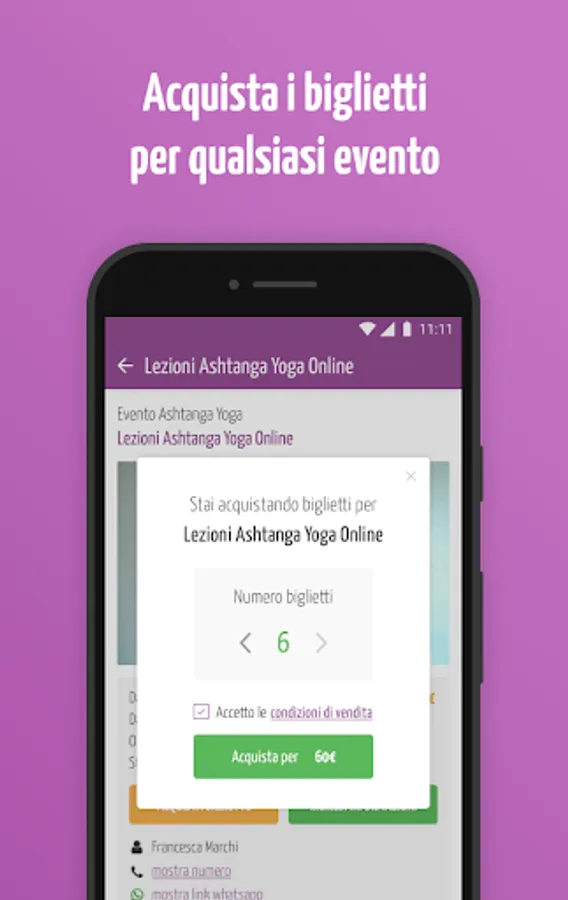 Search for the event you like most directly from the App, ask for information, and book with a click.