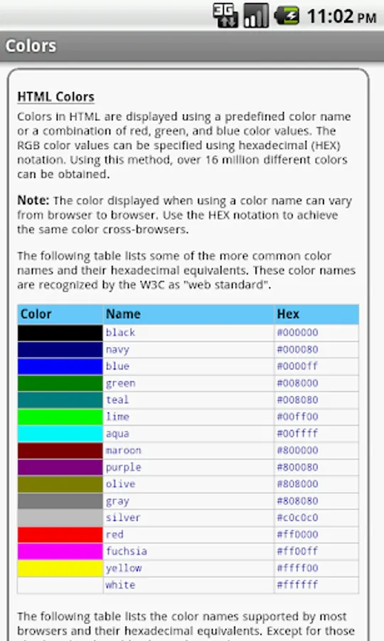 Reference (Colors, Fonts, Elements and Valid DTDs, Language Codes, HTTP Status Messages, URL Encoding)