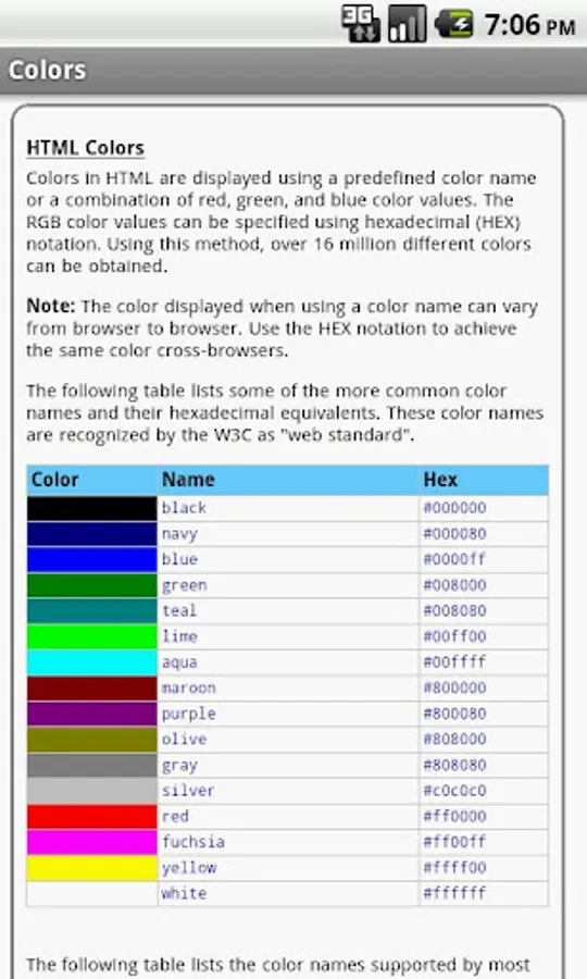 Reference (Colors, Fonts, Element and Valid DTDs, Deprecated Elements, Language Codes, HTTP Status Messages)