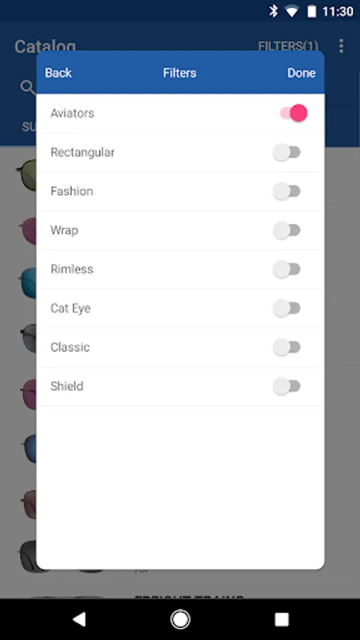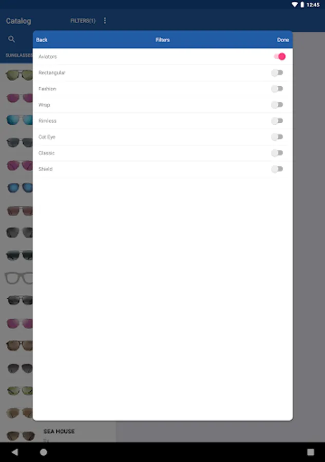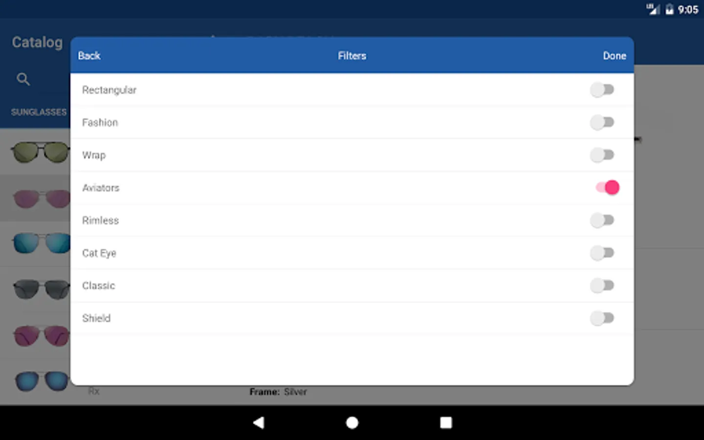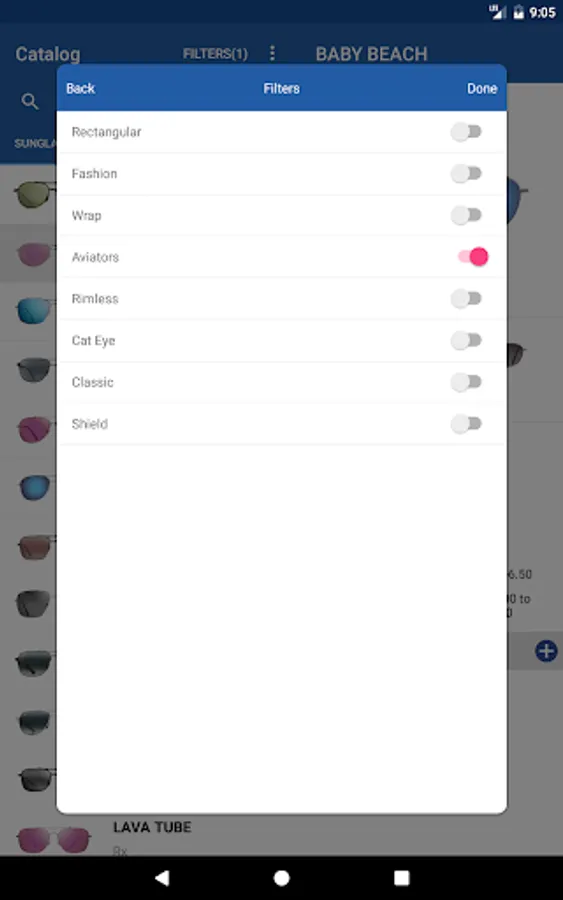 • Quickly filter by frame size, prescription parameters, lens color, lens material and other categories to find the perfect sunglasses for your customer.