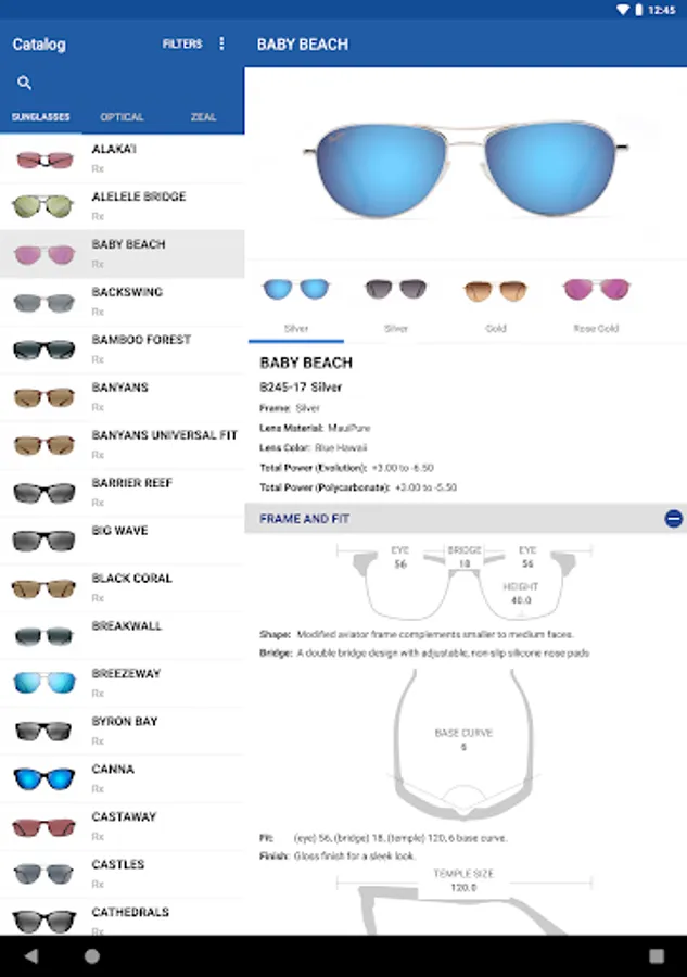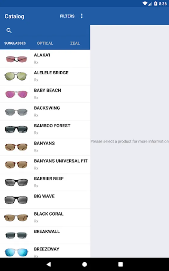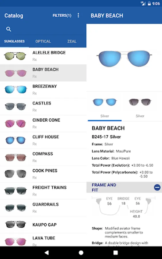The Maui Jim Trade Account Catalog app provides a listing of available Maui Jim and Zeal Optics sunglass products in a tool that allows you to quickly browse the complete product line.