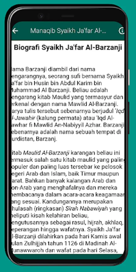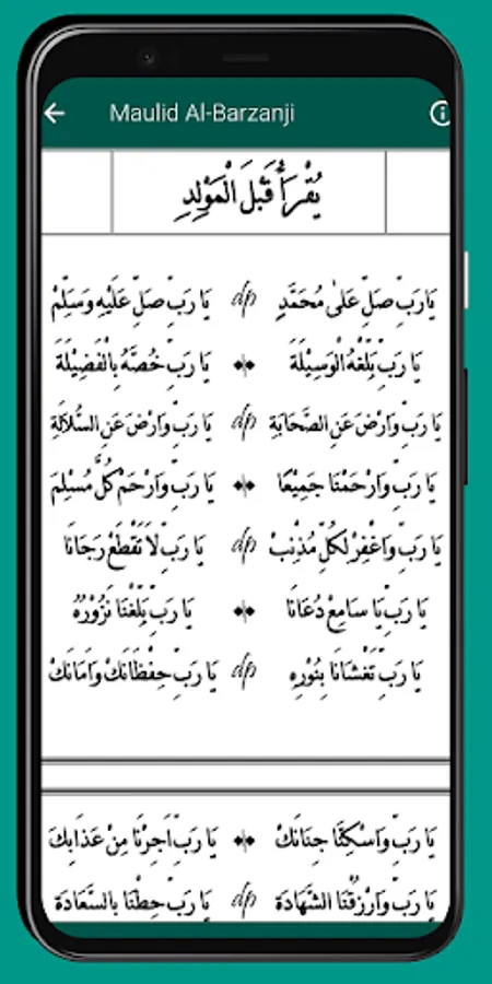 Aplikasi Maulid Barzanji ini dilengkapi dengan teks bacaan maulid, audio/suara, dan terjemahnya. Maulid Al-Barzanji yaitu kitab yang berisikan kisah perjalanan Rasullulah saw, puji-pujian kepadanya, serta doa-doa. Tidak hanya dijadikan bacaan ketika merayakan hari kelahiran Nabi saw, Maulid Barzanji juga dijadikan rutinan setiap malam Jumat atau malam Senin oleh mayoritas masyarakat.