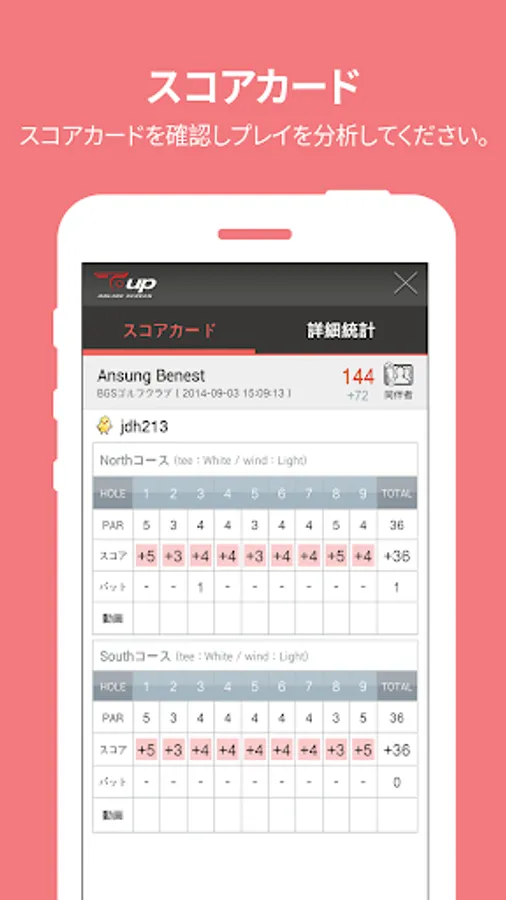 Check the round record in the app and see. You can check round records and detailed data anytime and anywhere. (Swing video can be checked)