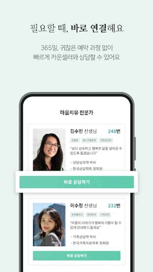 From 9:00 am to 1:00 am, you can connect counseling in real time with a psychological counselor with proven skills and rich experience at any time.