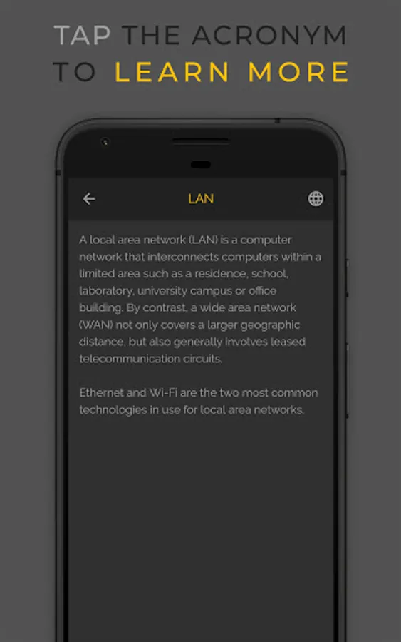 CompTIA A+ Acronyms is an application developed to master all acronyms listed in the CompTIA A+ (220-1001 & 220-1002) objectives. The free version of the app gives you the ability to view the acronyms and their definition in alphabetic or random order. By tapping the acronym or abbreviation you are able to view a brief explanation, including an external link to Wikipedia.