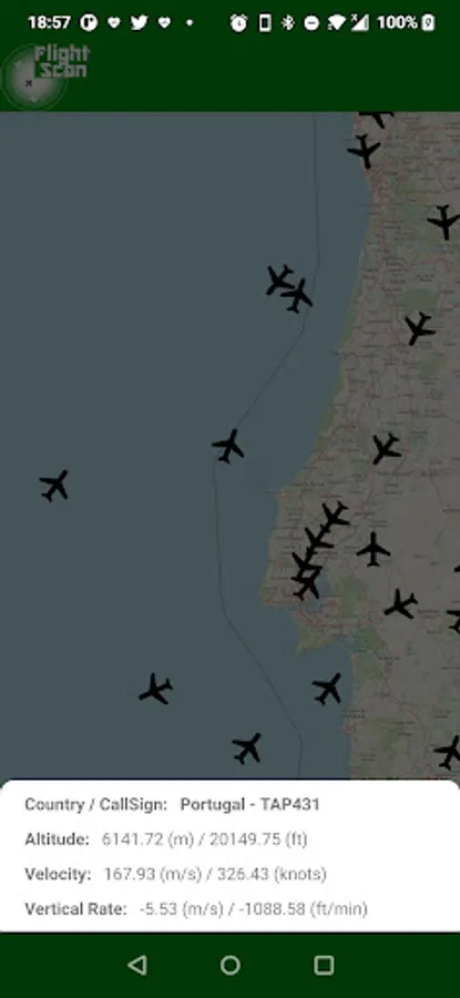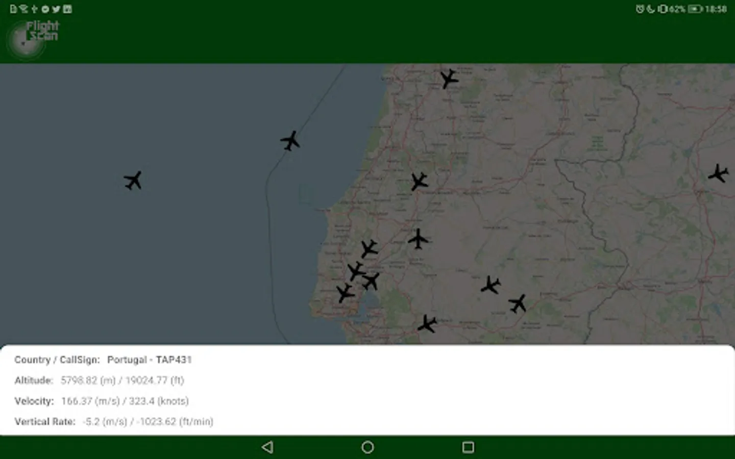 FlighScan allows you to check planes that are on the sky, at any moment, around the Globe. To check that It requires Internet connection. This kind of data and It's accuracy depends on sources that aren't controlled or developed by evusoft.