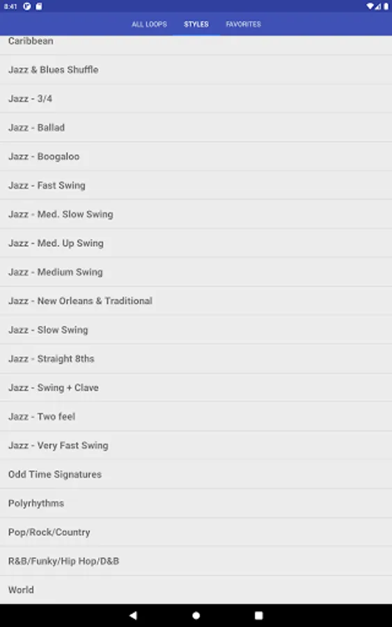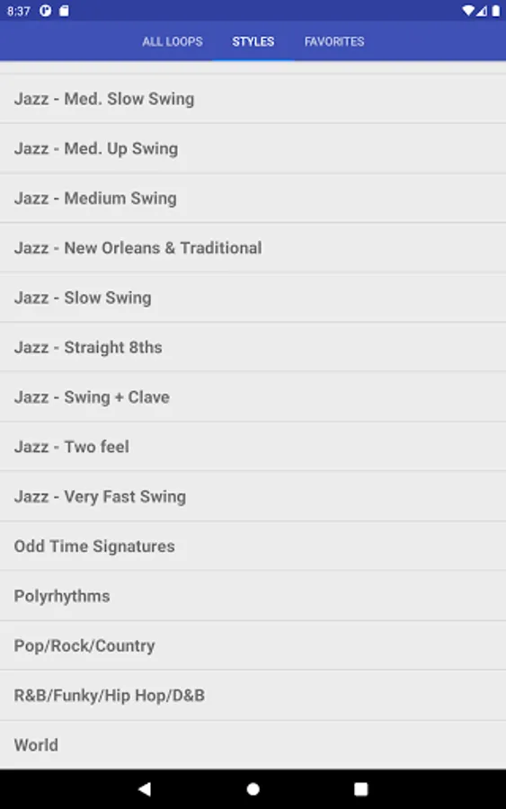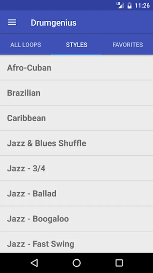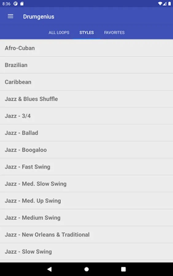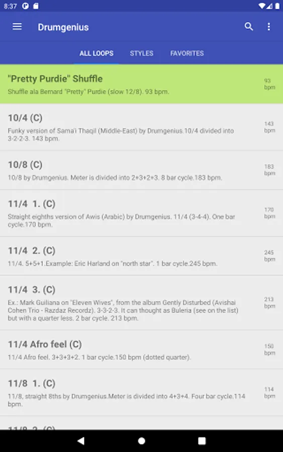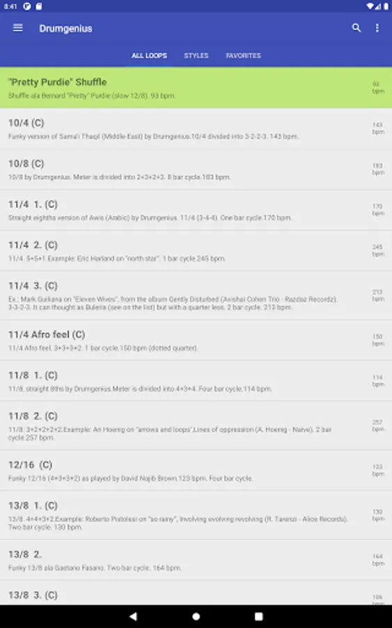 Download the app for FREE and use the PREVIEW FUNCTION for listening to all the loops before deciding to download them. You have at disposal three free loops to download from the list of 500 LOOPS TOTAL, so you can test the player functions and enjoy the practice with Drumgenius. Then, if you like it, on "Store" section, you can buy loops, having available three options: 10 Credits, 50 Credits and Infinite Credits. Each credit lets you download one loop at your choice from the complete list.