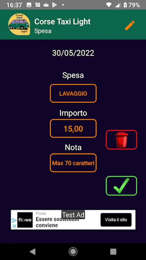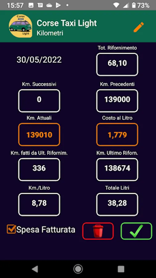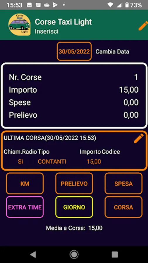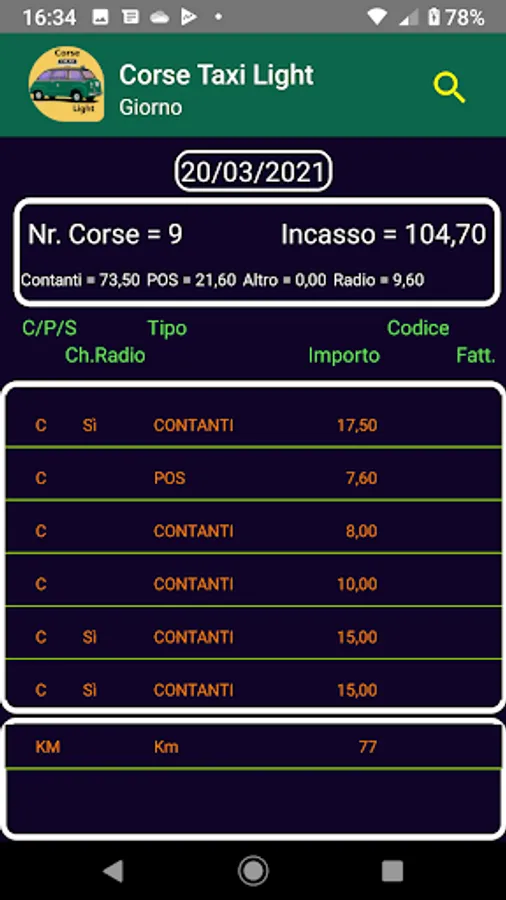 This application allows the taxi driver to record the trips made during the day, avoiding the use of pens and slips of paper and helping him in the management of the work. It also allows you to record the kilometers traveled and the expenses incurred during the day. It also creates statistical reports on the work done